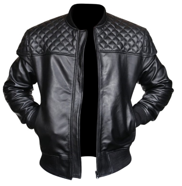 Handmade Men's Quilted Shoulder Rib Design Slim Leather Jacket
