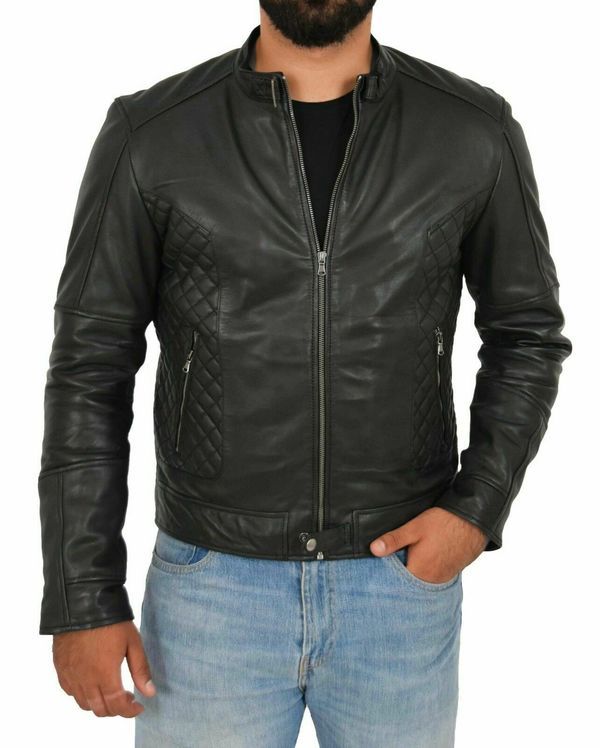 New Men Genuine Lambskin High Quality Leather Jacket Motorcycle Biker Black Coat