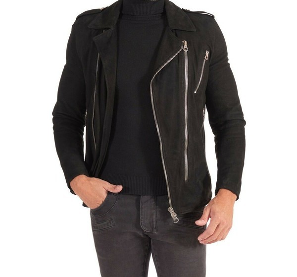 Men’s Motorcycle Racer Biker Jacket Genuine Real Suede Lambskin Leather Jacket