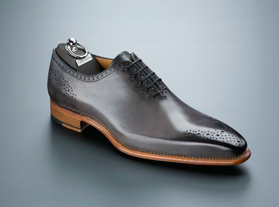 Two Tone Gray Black Burnished Brogue Oxford Lace Up Men's Formal Business Shoes