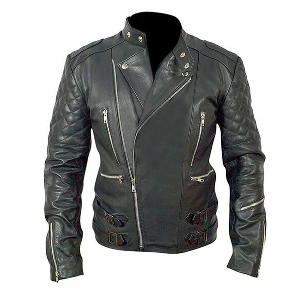 Men’s Motorcycle Cafe Racer Biker Jacket Genuine Real Lambskin Leather Jacket