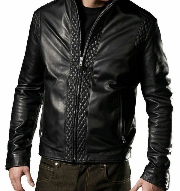 New Men's Leather Jacket Black Slim fit Motorcycle Real Soft lambskin