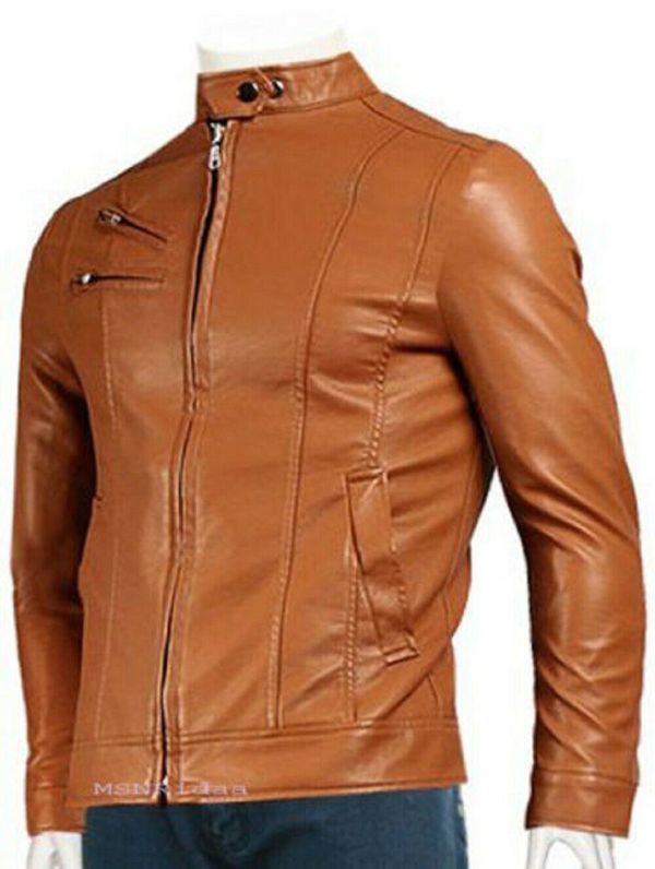 Men Leather Jacket 100% Genuine Lambskin Zipper Leather Jacket