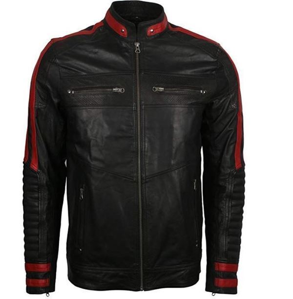 New Men Leather Jacket Black & Red Slim Fit Biker Vintage Motorcycle Cafe