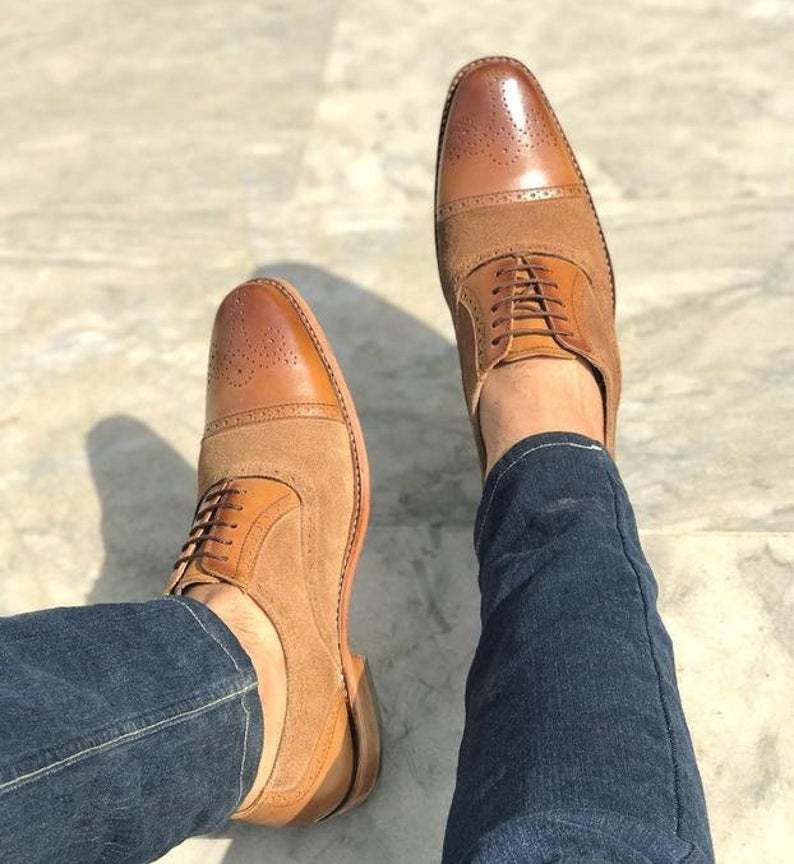 New Handmade Tan Shaded & Camel Suede Leather Lace up Shoes for Men's