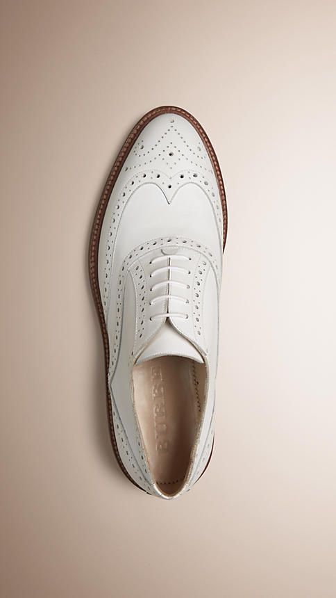 New Men's Handmade Leather White Rounded Brogue Toe Oxford Wing Tip Stylish Shoe